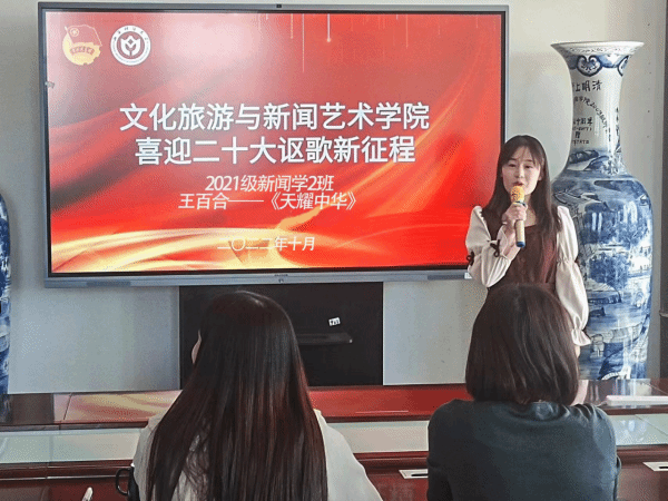 团委在博学楼开展“喜迎二十大 讴歌新征程”红歌会活动,邀请学院声乐专业老师许凯瑞进行点评。