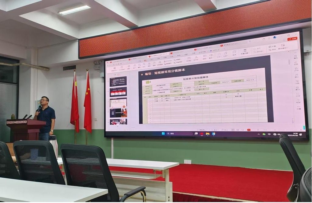 讲座伊始,陈坤老师从视频脚本的重要性入手,通过多个优秀视频案例的现场解析,生动展示了优质脚本对短视频创作的关键作用。在互动环节,同学们踊跃发言,结合案例分享了自己对视频脚本的理解与思考。