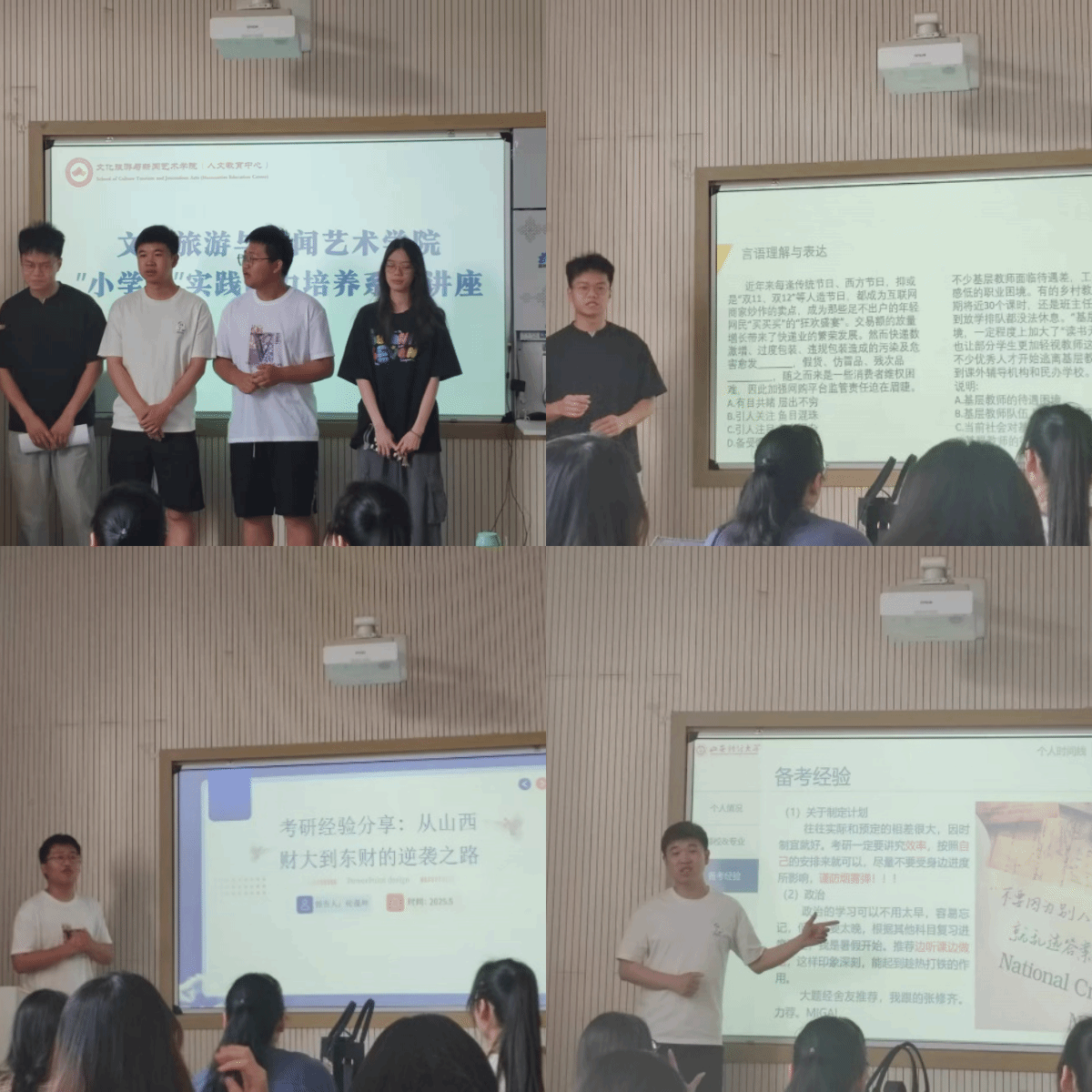 四位优秀毕业生的分享内容详实、案例丰富、策略实用,覆盖了旅游管理专业学生毕业去向的核心选择。讲座现场气氛热烈,互动环节同学们踊跃提问,学长学姐们耐心细致地解答了关于院校选择、复习规划、心态调整、资料获取等具体问题,提供了极具针对性的建议。