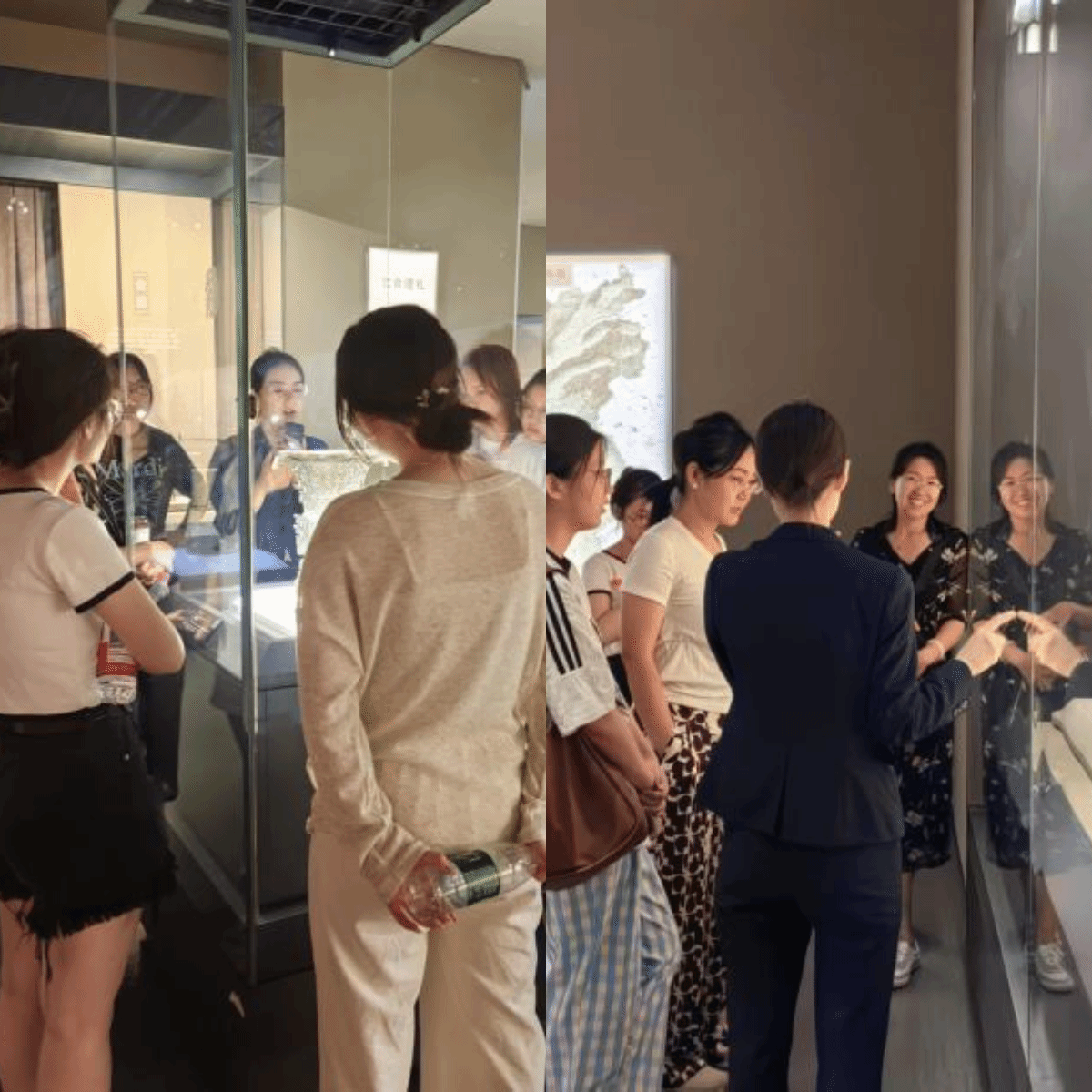 午后,研学团队转赴太原市博物馆。这座以“岁月回响”为设计理念的现代化展馆,通过“锦绣太原历史陈列”等特色展览,生动展现了太原独特的地域文化。索烨丹老师引导同学们在青铜器上观察汉字的发展变化,将课本知识与珍贵文物相结合,从金文、隶书等古文字载体中,从一件件珍贵文物中感受中国文化的博大精深。在参观过程中,晋阳古城遗址出土的精美瓷器、石刻等文物引起了同学们的浓厚兴趣,尘封的历史画面浮现在同学们的脑海中,让人不禁回到了那峥嵘的岁月变迁中。