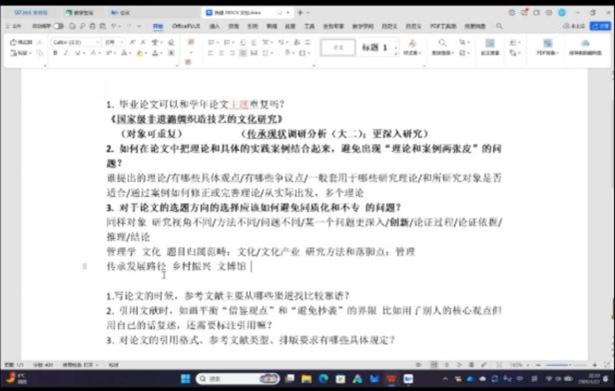 在论文写作指导环节,朱老师围绕问题中的“学年论文与毕业论文主题的选择是否可以相同”,“论文理论结合案例论证难”和“论文选题方向”等问题进行了详细解答。对于毕业论文与学年论文的关联性,朱老师明确研究对象可一致但研究问题需要在原有基础上进行深化拓展,避免完全重复;针对理论与案例脱节的问题,老师提出深入研究理论,结合对理论的理解认识,对典型案例进行论述;至于选题方向同质化与不专问题,朱老师强调要立足文化产业管理专业特色,从研究视角、方法以及论证过程实现创新,深入研究。在论文写作要求规范方面,朱老师推荐引用参考文献可从知网、读秀等权威文献平台查找,提醒学生AI工具要合理使用、重视纸质文献;详细解读引用规范,区分直接引用与间接借鉴的标注要求;严格明确论文封面、格式、结构等学校统一规定,强调核心论证部分需占主体,参考文献需兼顾多样性和相关性。