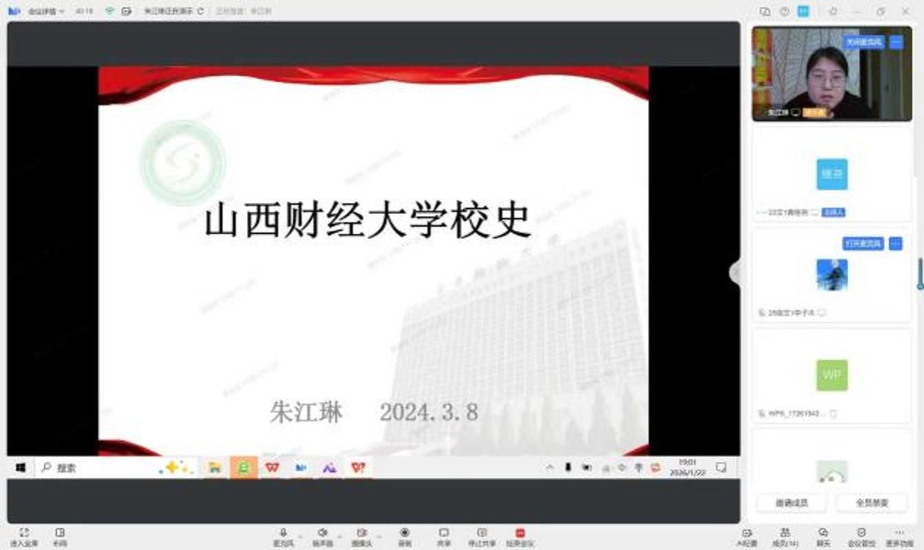 2026年1月22日19:00—21:00,文化产业管理专业“今日我以财大为荣、明日财大以我为荣”专题讨论暨学年论文写作指导会议在线上如期进行。本场会议由文化产业管理教研室朱江琳老师主讲,其指导的23级、24级和25级学生云端参会。