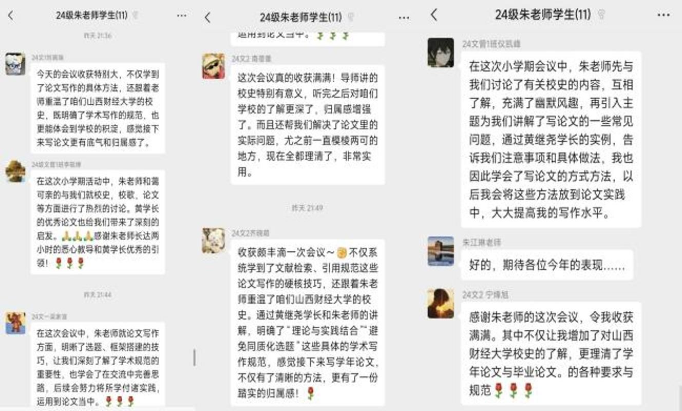 会议最后,朱老师呼吁同学们端正态度、提升沟通能力,以严谨的态度对待论文写作,善用学校资源增长见识,通过实践精进学术素养。会议结束后,同学们反响热烈,纷纷表示受益匪浅,积极表达了自己对于会议内容的见解与收获。本次会议既增进了同学们对校史的了解,也为论文写作提供了系统指导,其对学生学业发展与个人成长具有重要意义。
