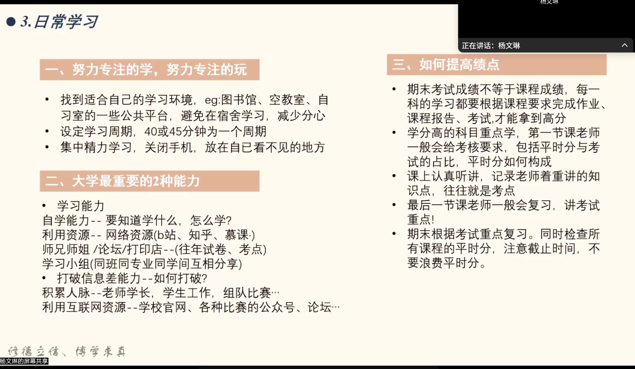竞赛与科研是加分项而非必选项,学生应根据个人精力与排名合理取舍。成绩处于边缘的学生应优先保障学业;实践能力可通过三下乡等活动培养,其成果可转化为竞赛创新点。保研面试需针对简历中的项目经历准备英语问答,避免临场卡壳。她最后提醒学生不应被保研框架局限,人生存在多种可能性,应结合兴趣与特长选择发展路径,大一尤其要专注成绩提升,待基础稳固后再拓展竞赛实践,实现风险规避与机会把握的动态平衡。